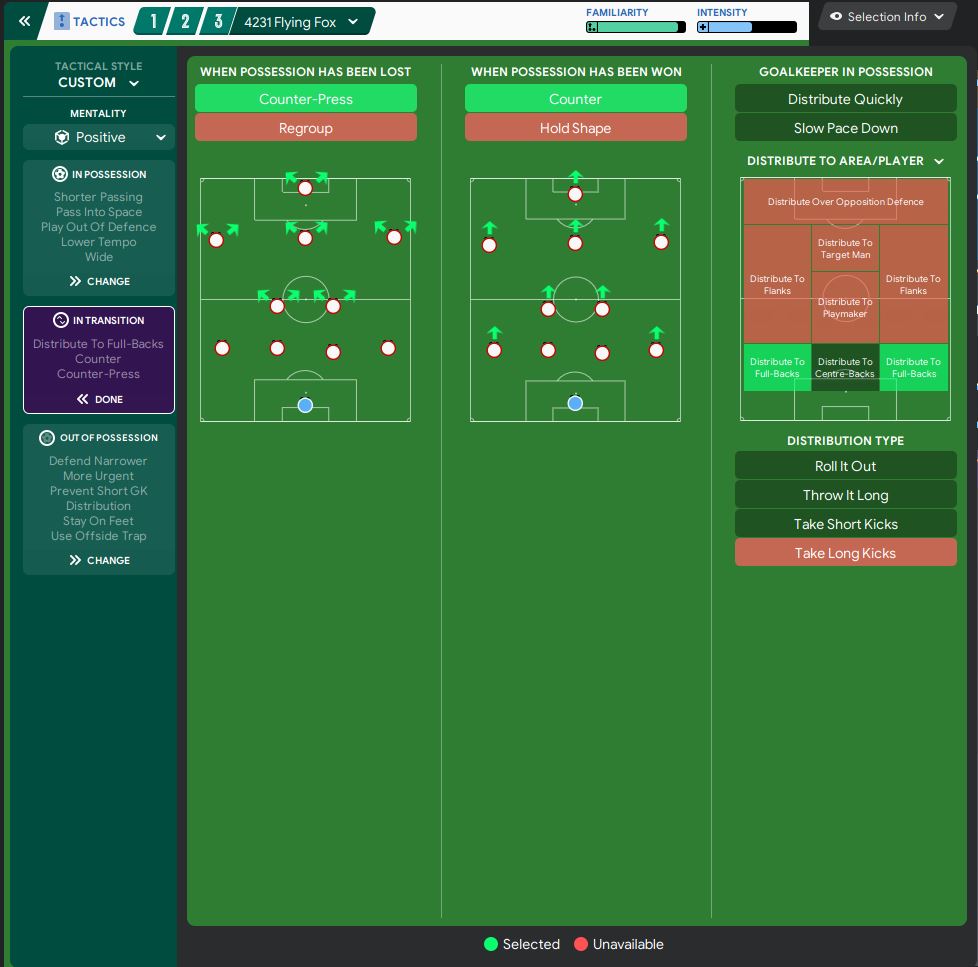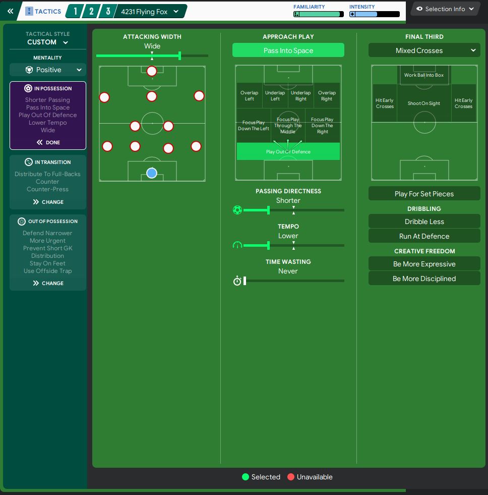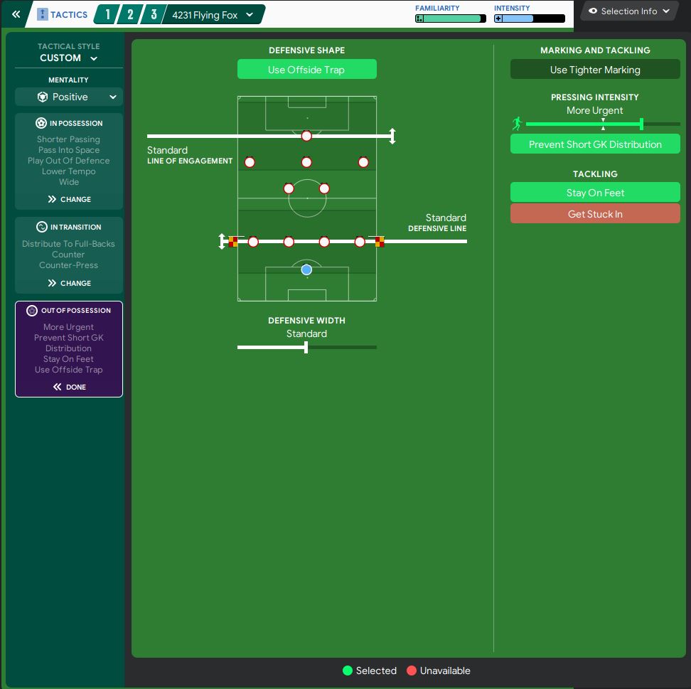 Some minor changes will be made in the game for sure, but this is the base of the tactics. The idea is to fully utilise the flanks as Lyon have players that can play really well at the wider area. I’ve always loved the Play Out Of Defence instruction with shorter passing and lower tempo, so players will have more time to look for better passing option. In this tactic, I decide to add Pass Into Space because the attackers are quite pacey and at the same time, I’m looking forward to play some entertaining football. In terms of the transition play, I always use Counter-Press and Counter. Lyon is one of the top teams in Ligue 1 so I’m not too worried of my players going out of their position. I keep the line of engagement and defensive line in standard, and I add the instruction of Use Offside Trap. I want my players to press the opponent quickly, but not extremely urgent, and I want them to press the opposition keeper as well. I love to add Stay On Feet as well so my players won’t dive into tackles and collect unnecessary booking.