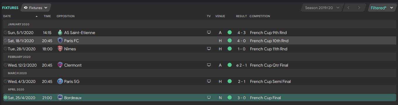 The board sees French Cup as a fairly important competition. The minimum expectation is that the team reach the Semi Final of the French Cup. Cup competition is always a good opportunity that allows your younger players to shine. My journey to the French Cup Final is pretty challenging as well. One of the highlights was the 4-3 win against AS Saint-Etienne.