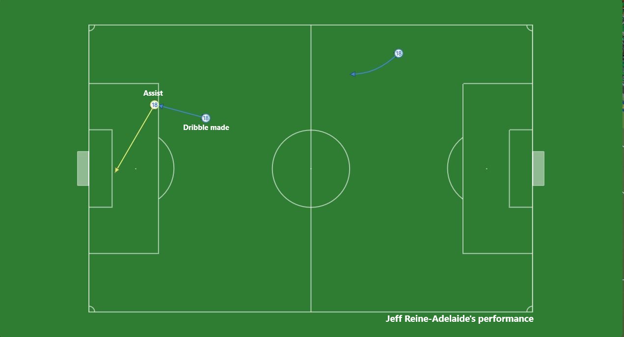 The game changer is Jeff Reine-Adelaide as he was the one who provided the final assist to the winning goal. He made 2 successful dribbles in the game and one of them turns into an assist.