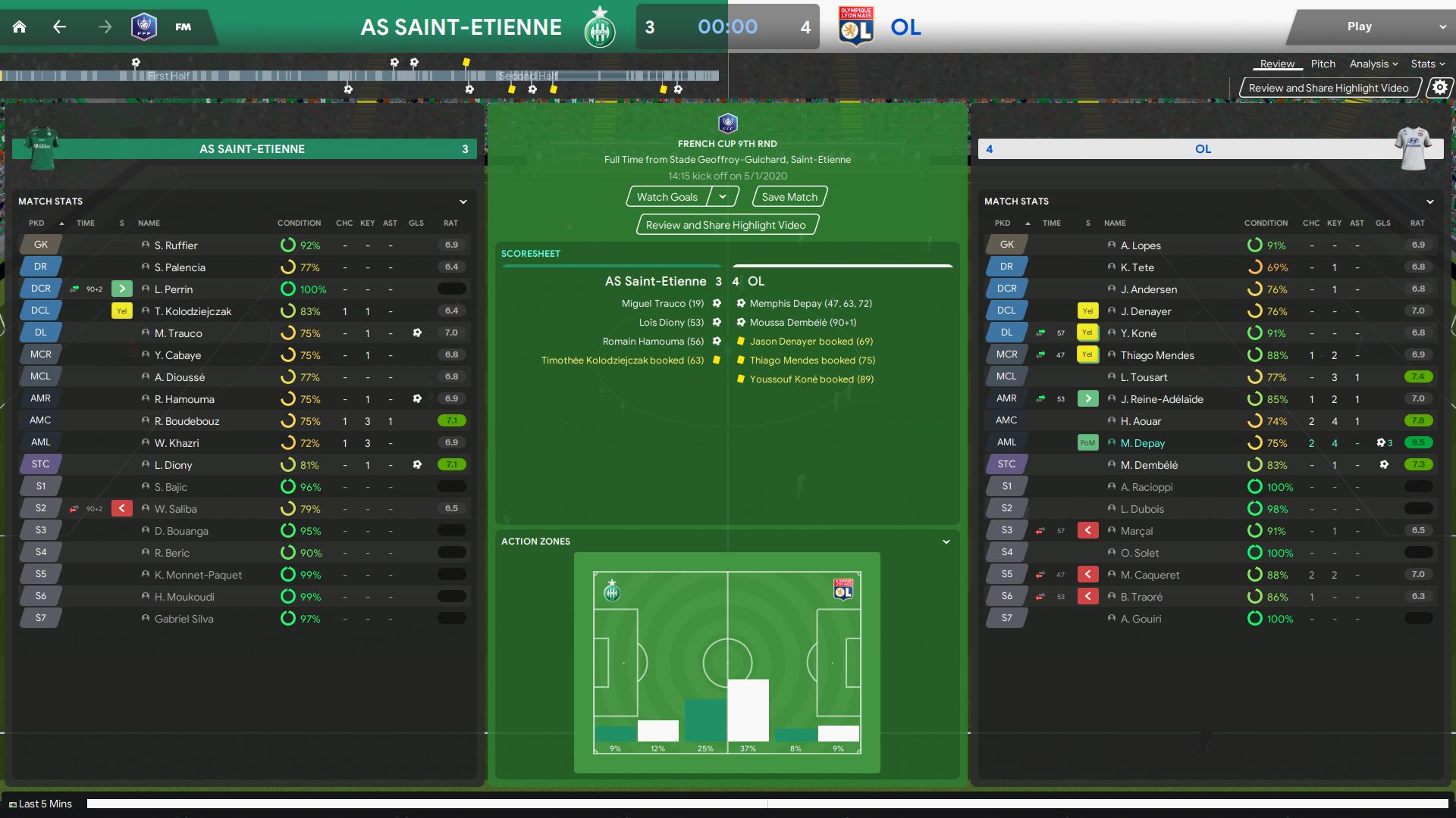 This was the first cup game I had with Lyon and it was the 9th round of the cup. I actually put on a pretty strong team to fight with them as I know AS Saint-Etienne is not a weak team. To be fair, we were having a tough time and only scored the winning goal at the 91st minute.