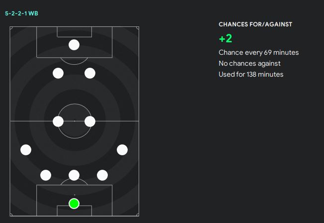 I wasn’t very happy with these tactics as I feel like we could be more effective in the attack. I used the 4231 Flying Fox back vs Standard in the next game and we scored 3 goals. In terms of the chances, the 5-2-2-1 formation has a +2 in general and we create chances in every 69 minutes. I would definitely like to try the tactics again if I got the chance, and slowly produce an effective second formation for our team instead of relying on the 4231.
