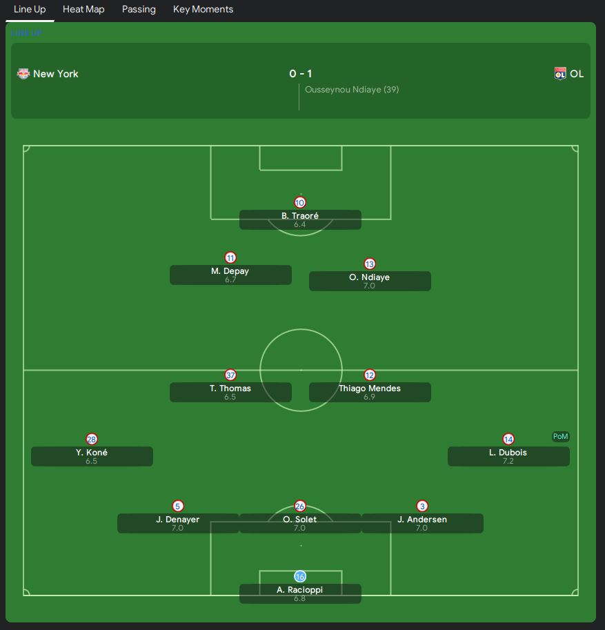 So, the second game against New York Red Bulls, I adjust the defensive line back to standard to keep the gap smaller. We played better in this game having 15 shots and 2 clear cut chances. In this match, we finally see a better performance from our Shadow Striker and Advanced Playmaker. Memphis Depay the Shadow Striker made an exceptional run before passing the ball to Ousseynou Ndiaye. The Advanced Playmaker then struck a beautiful goal.