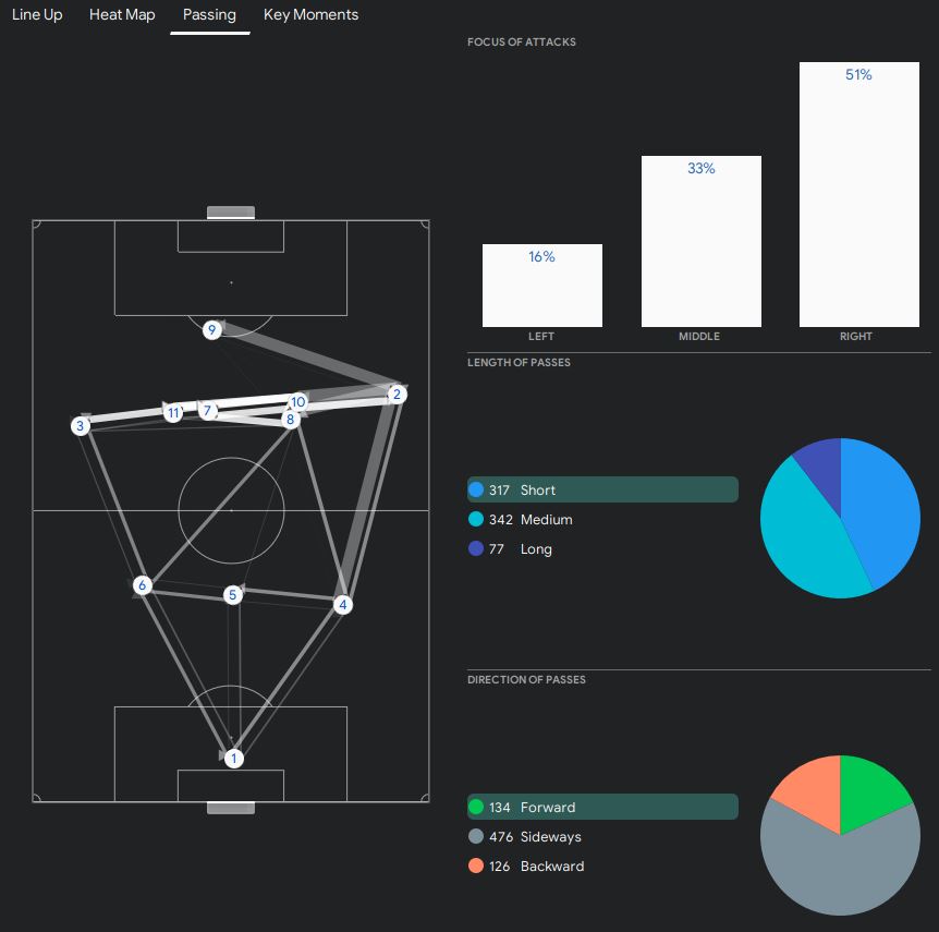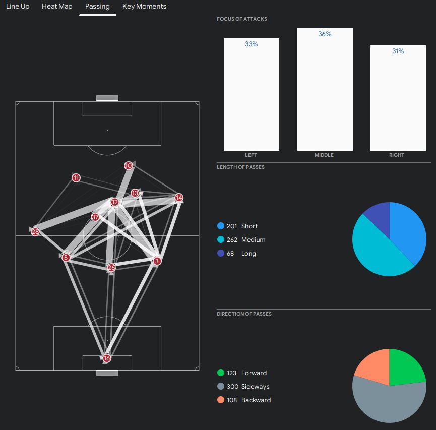 I tried this tactic against Zenit and New York Red Bulls. We won both matches but we only scored one goal in each match. We had a really tough time against Zenit. We had 11 shots but only 4 on target. The only goal we scored was a penalty. On the other hand, Zenit had 10 shots with 6 on target. Looking at the analyst report, it clearly shows that the gap between our midfield and defence is way too big.
