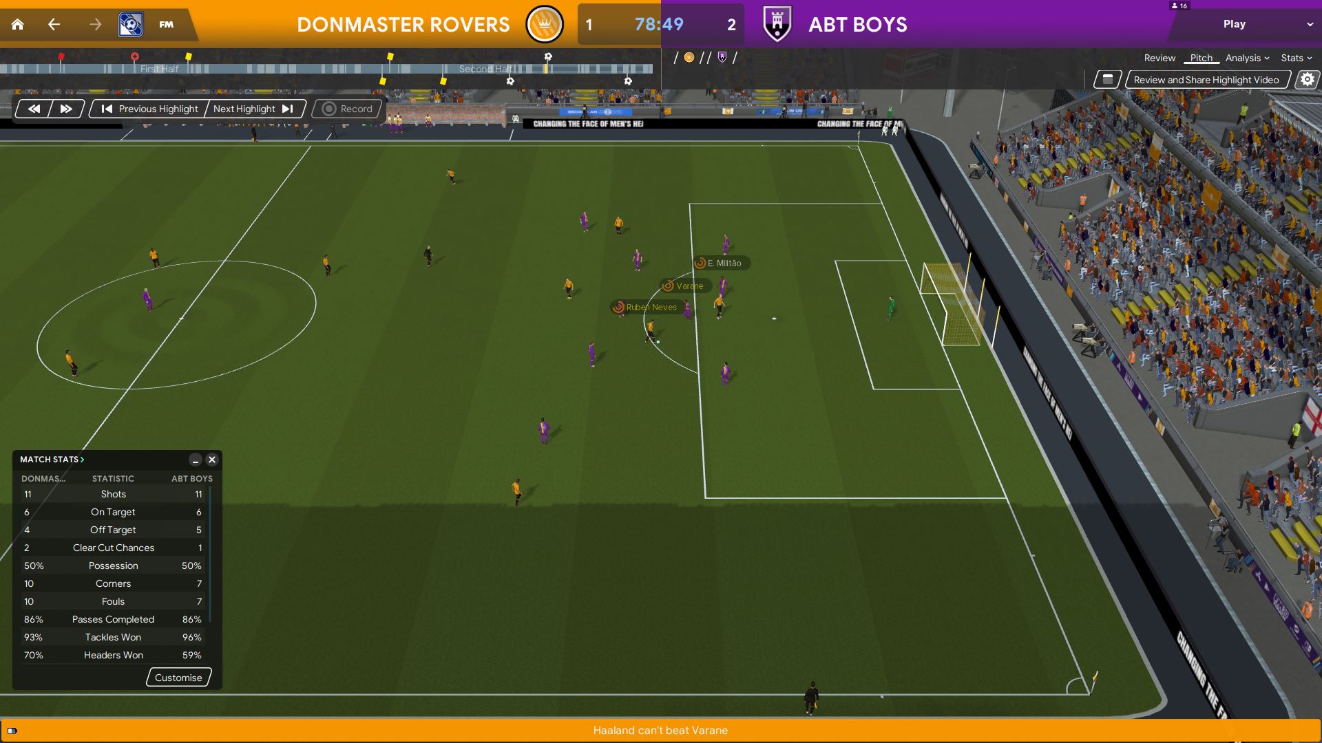 Erling Haaland’s goal – We didn’t manage to keep a clean sheet, however, I wasn’t too angry at conceding this goal. Raphael Varane was chasing Erling Haaland putting pressure on him. Eder Militao did well in blocking Haaland’s shot. Unfortunately, the ball bounced back to Ruben Neves, who can simply play a through ball Haaland. The defenders did the right thing in this defensive play.