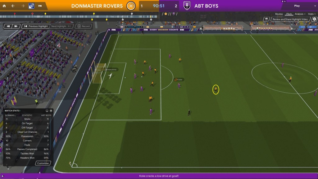 I thought it would be good to look at the match highlights to identify whether or not my tactics work. I scanned through the key highlights myself, but in this chapter, I would be focusing more on the goals.