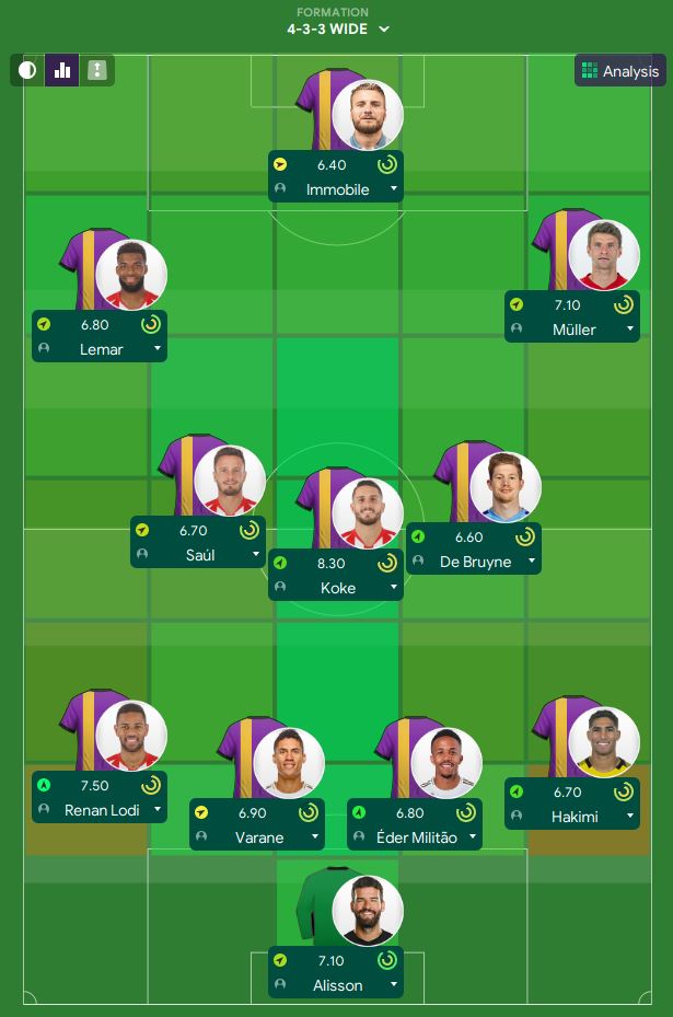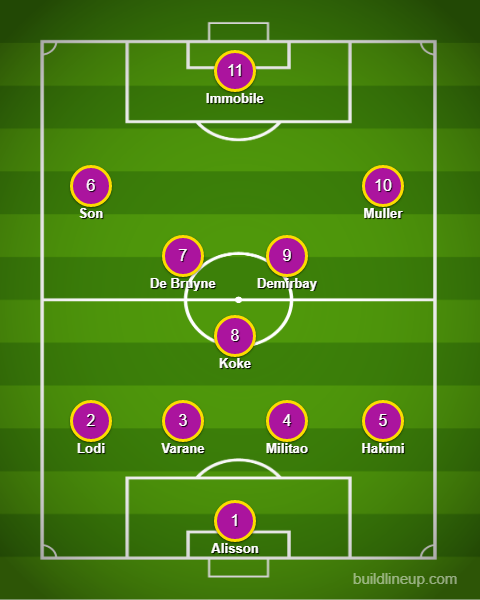In my expectation, I would play Kerem Demirbay and Son Heung-Min. However, my assistant manager decided not to include them in the starting line-up. He replaced them with Saul as the Mezzala and Thomas Lemar as the Inverted Winger. Well, it was a great choice though. Lemar provided 2 key passes in the game while Saul had a decent game as well.
