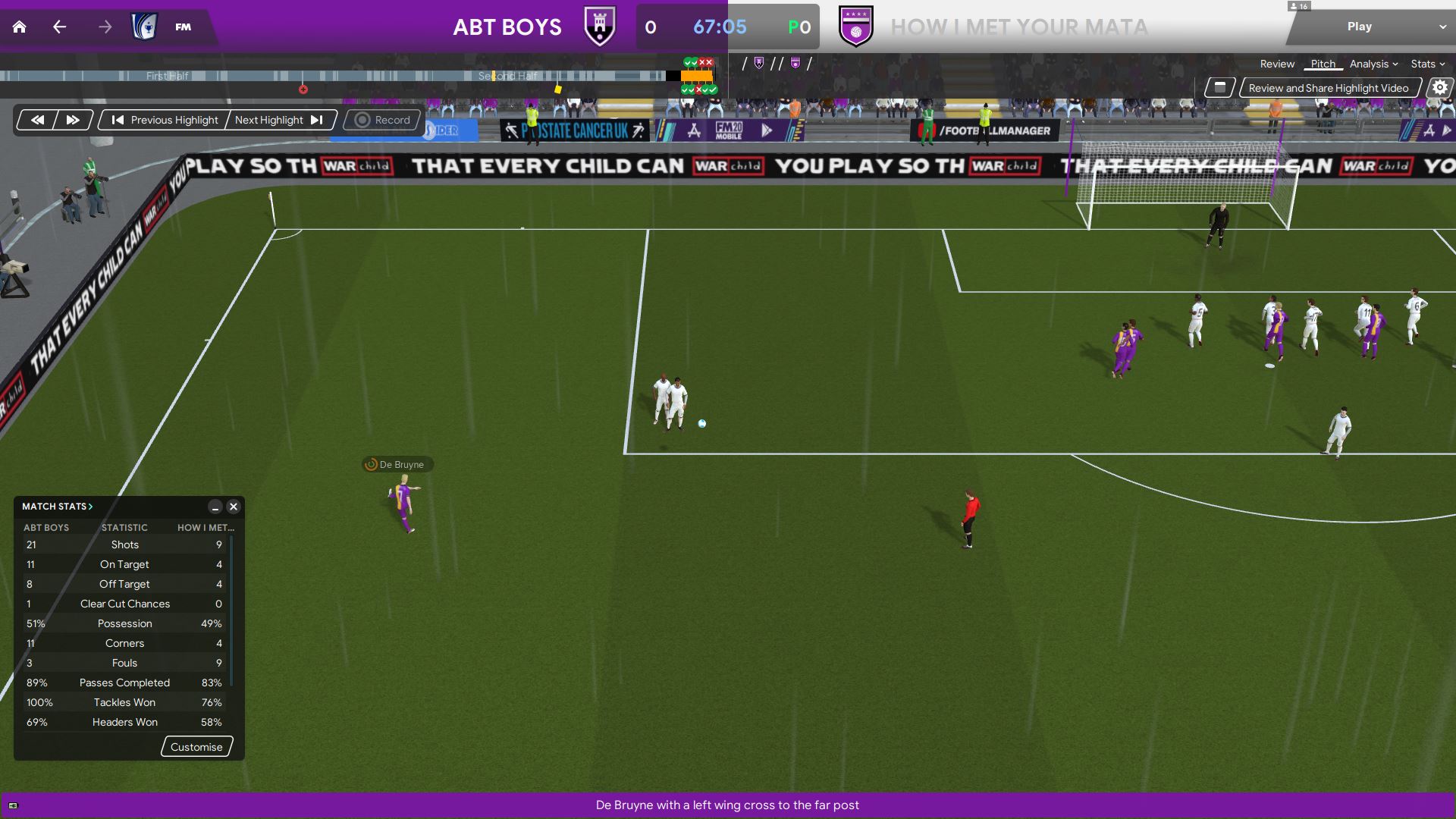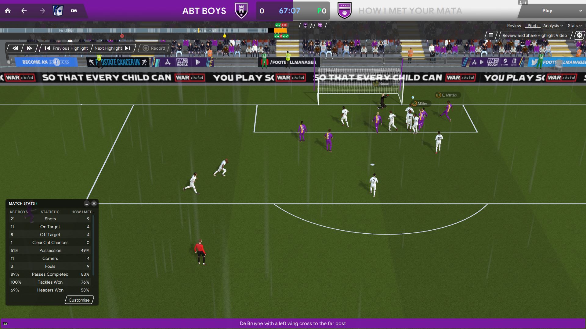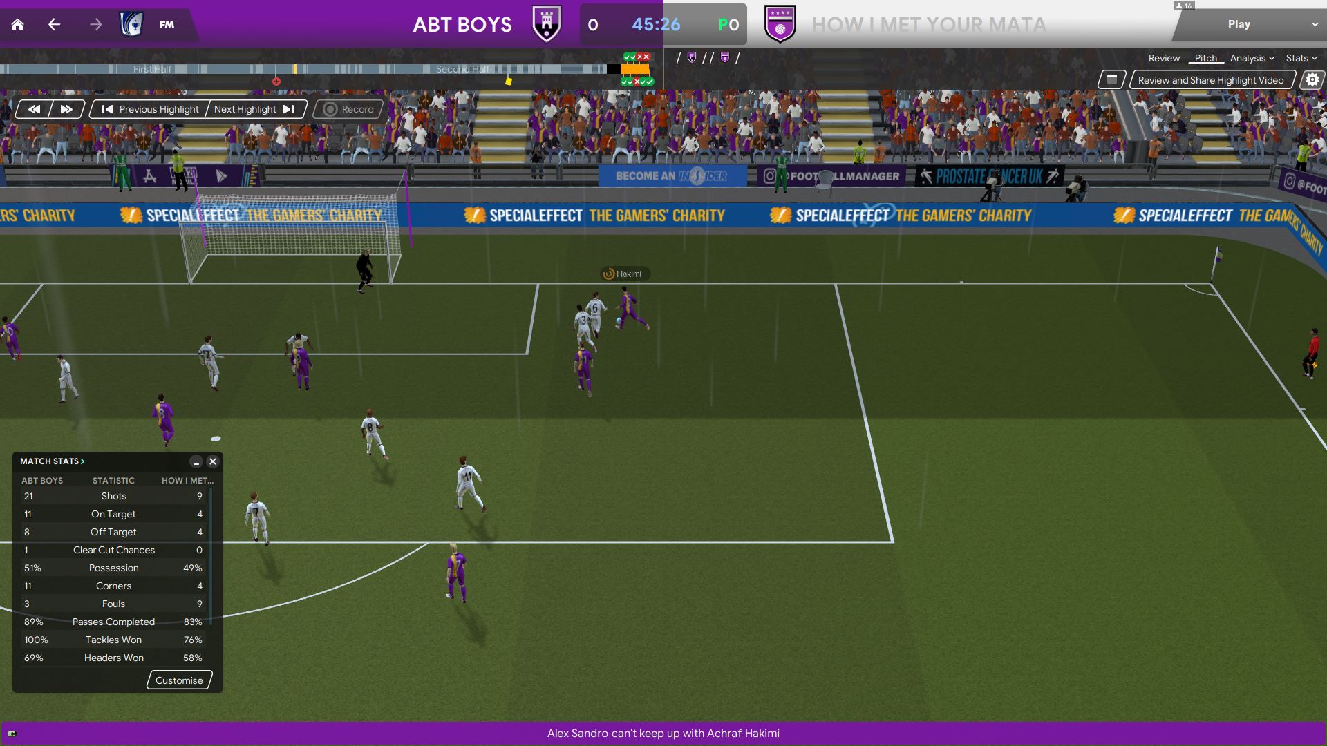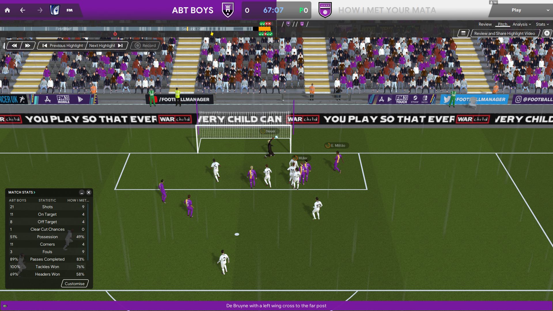 It was a tough match and we didn’t score a single goal. However, we did create a few chances. What impressed me was the key passes my players made. My 2 wingbacks made 5 key passes and my 3 midfielders made 11 key passes in total.