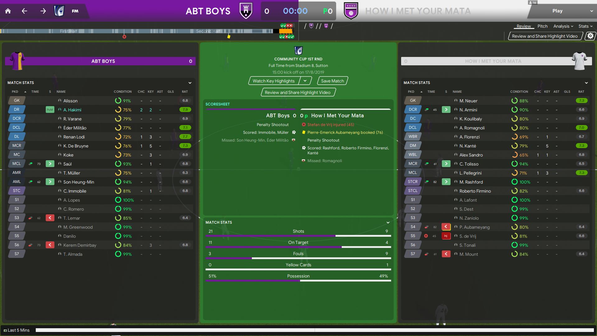 If Kante scored the next penalty, ABT Boys would be knocked out from the cup. Which Kante did! 4-2 in the penalty shootout, ABT Boys were out of the cup competition. Congratulations, How I Met Your Mata!