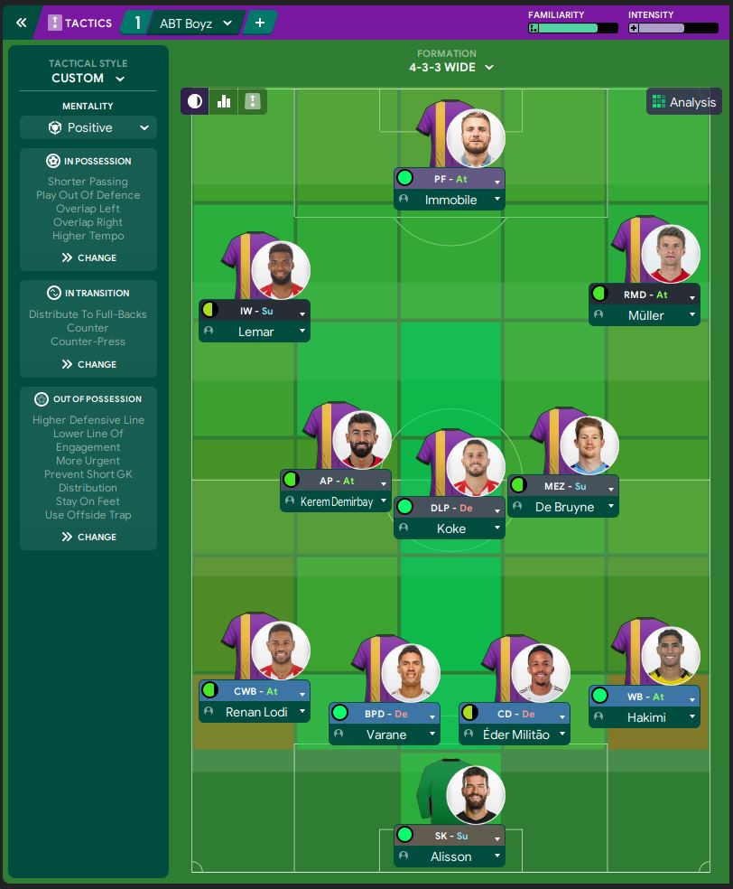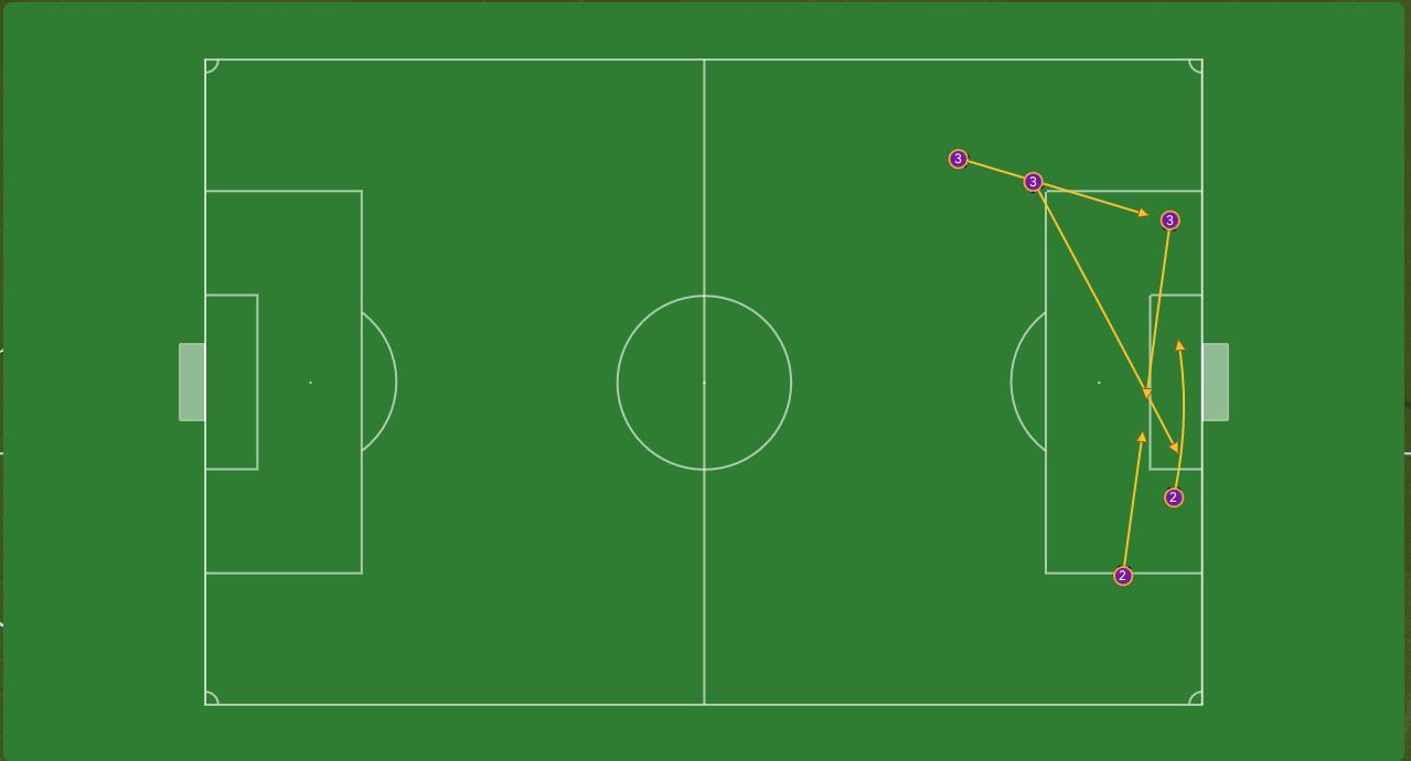 Playmaking Wingbacks – My wingbacks Achraf Hakimi (number 2) and Renan Lodi (number 3) made 5 key passes in total, 4 out 5 were crosses and 1 of the passes led to a clear-cut chance. That was very impressive because that’s exactly what I want from my team, using wingbacks as our playmaker.