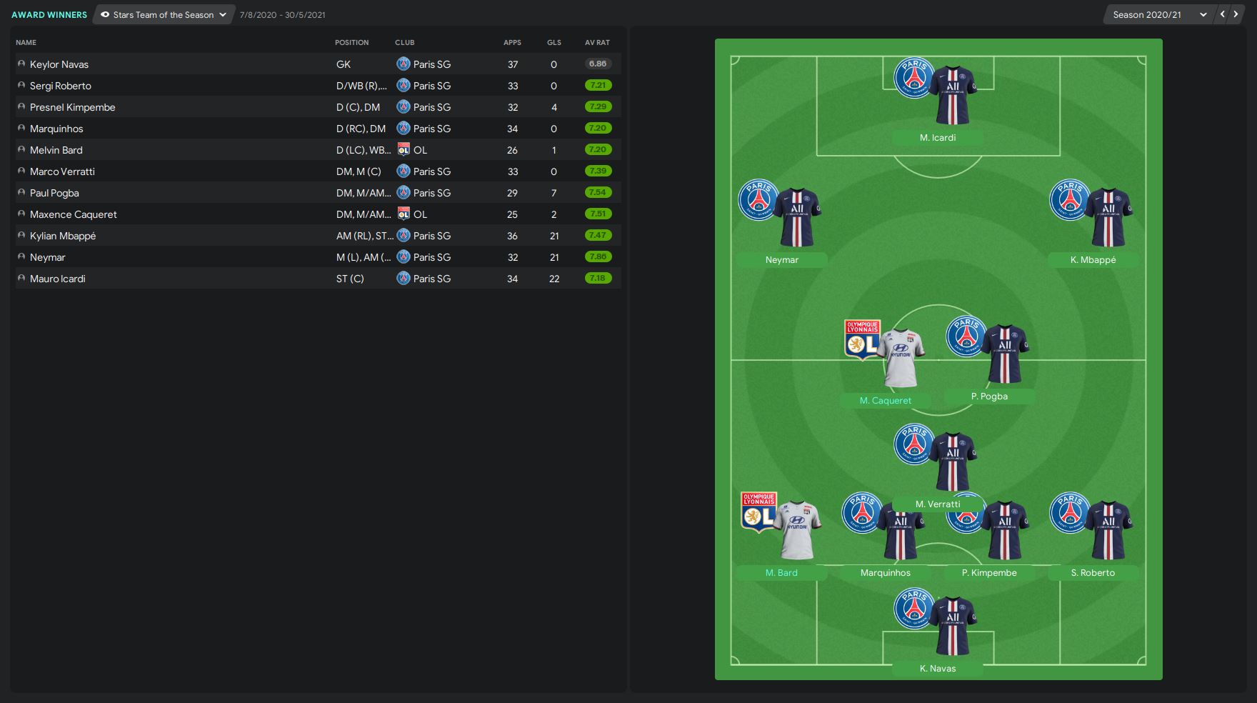However, Melvin Bard did get himself into the Stars Team of the Season. Basically, the All Stars Team is like PSG but Maxence Caqueret and Melvin Bard did get themselves into the list. I am very proud of these boys.