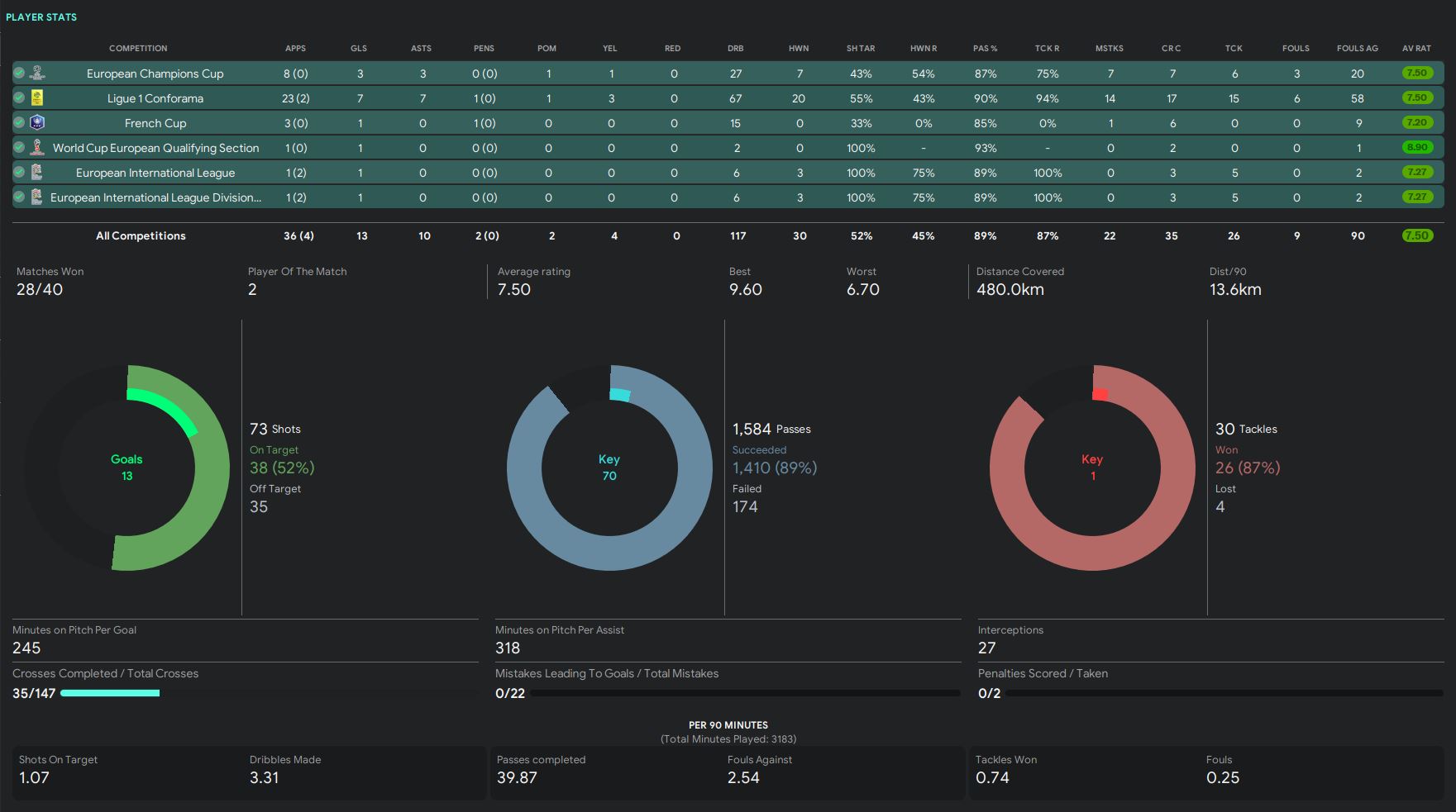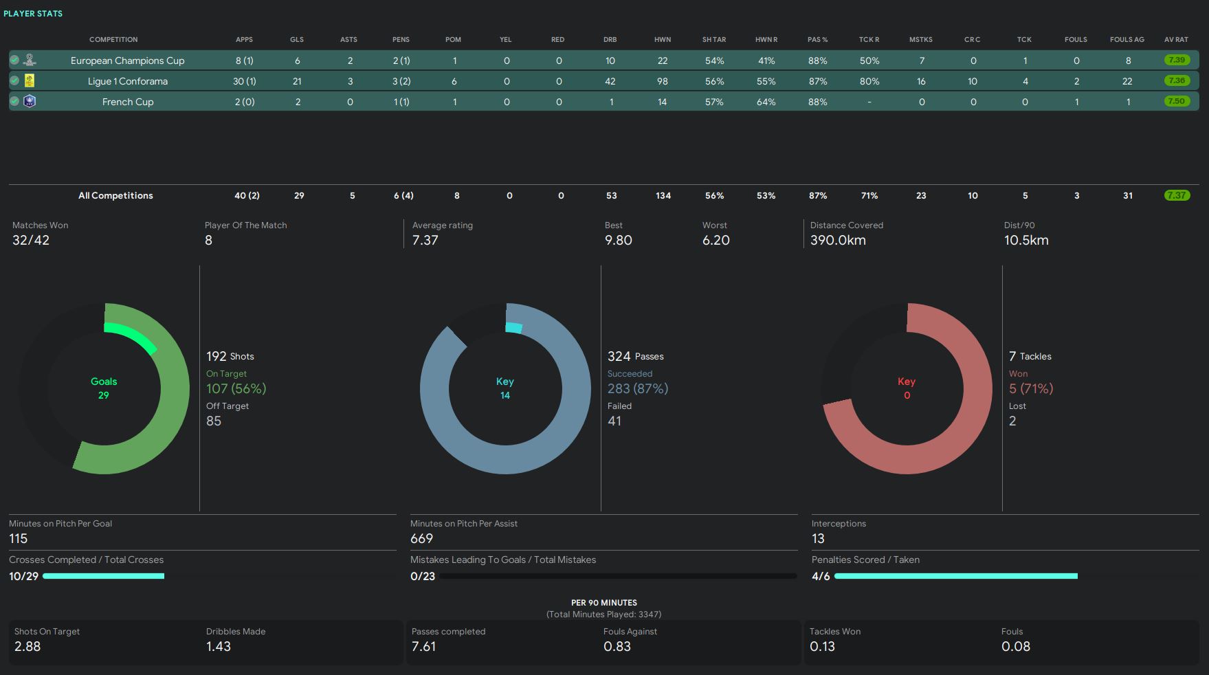 - 13.7km distance covered per 90 (highest in the team)
