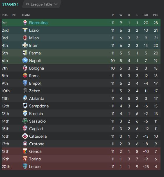 How’s it going on guys and welcome back to the ABTFM blog. Today, we are back with another chapter of the Fiorentina Journey. In the last chapter, we were the leader in the league after 7 games. We lost to Napoli at the second game of the season, but we did beat the defending champion Juventus. Right now, we are still having a great time in Italy. Without further ado, let’s have a look at our incredible performance.