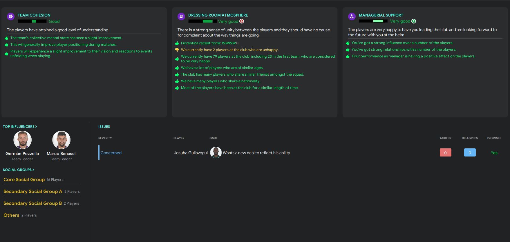 Now, let’s have a look at the board satisfaction. In summary, we got an A+ from the board. The board think we are doing an unbelievable job so far, and our fans are clearly happy about it. The board are happy with our match performance, tactics and the squad harmony. However, seems like they are not quite happy with the transfers we have made. The fans are happy with the transfers though. We will work harder to prove that we can achieve something with the new signings.