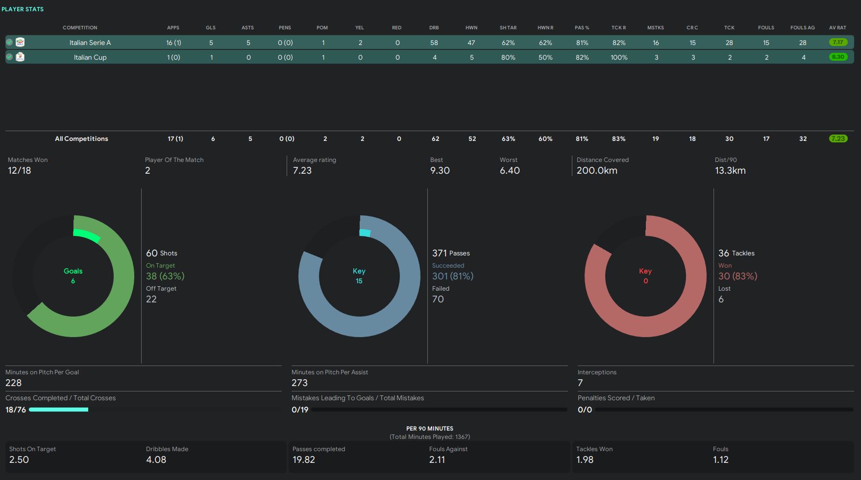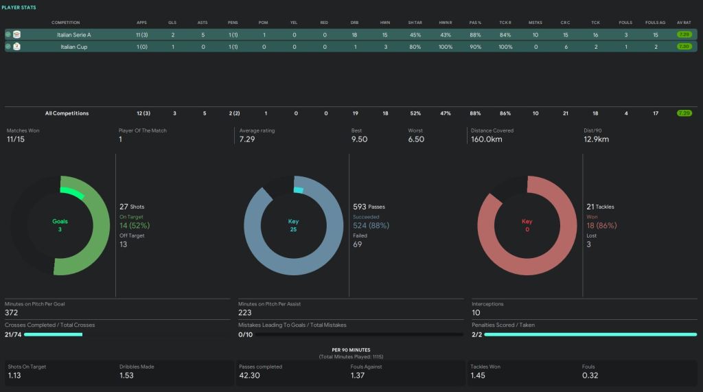 Saponara is one of my favourite players in this team since the beginning. The Italian attacking midfielder is playing as central midfielder for us. His performance is just amazing playing as a Mezzala. Below are the key stats.