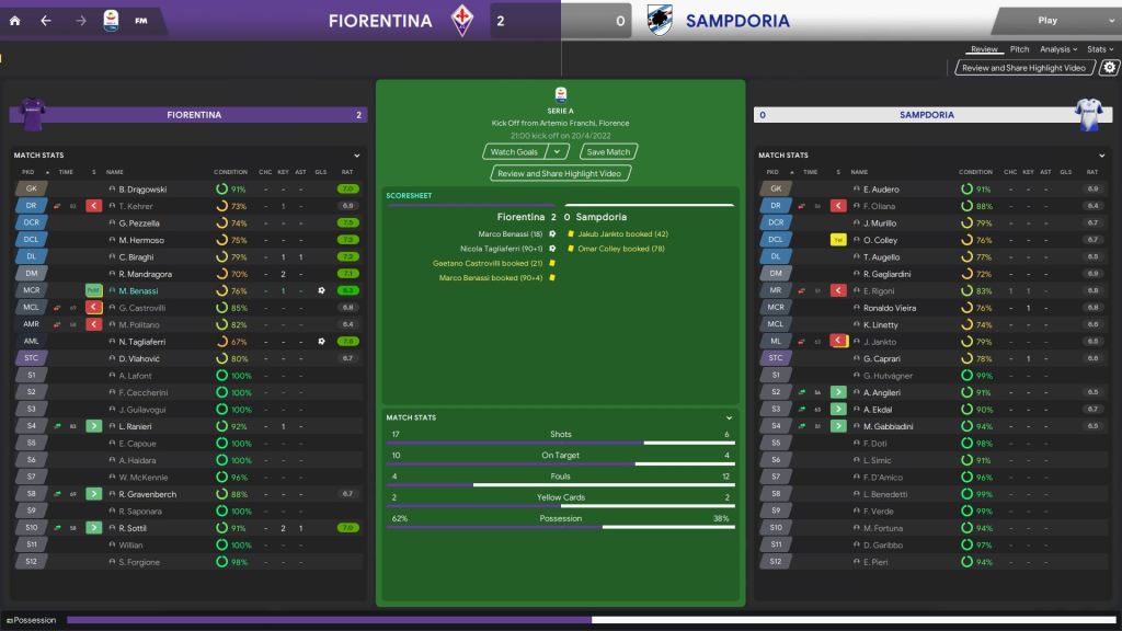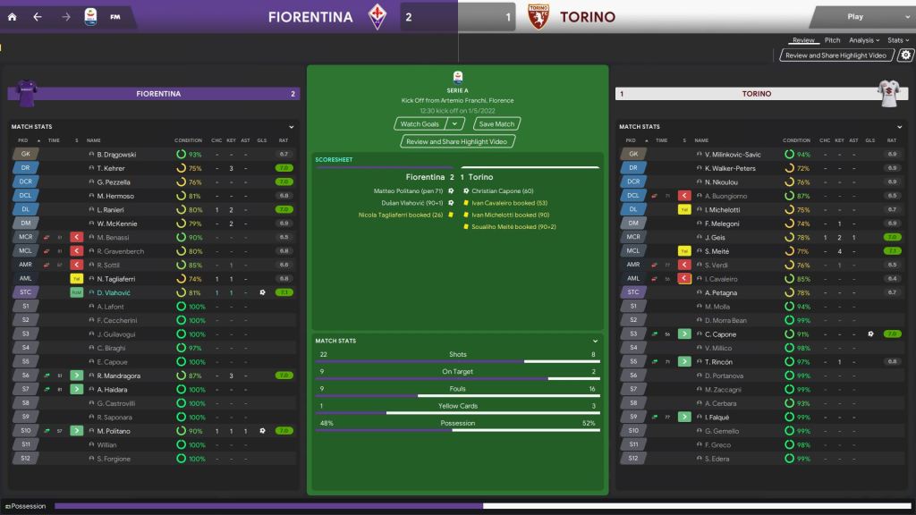 I hope you guys enjoy reading the Fiorentina Journey and don’t forget to follow me on Twitter @abt_fm to join the discussion of football. Also, do check out my other series in my blog like the Tactics Recreation and the Lyon Journey. Once again, thank you for your support and I will see you guys in the next chapter. Take care!