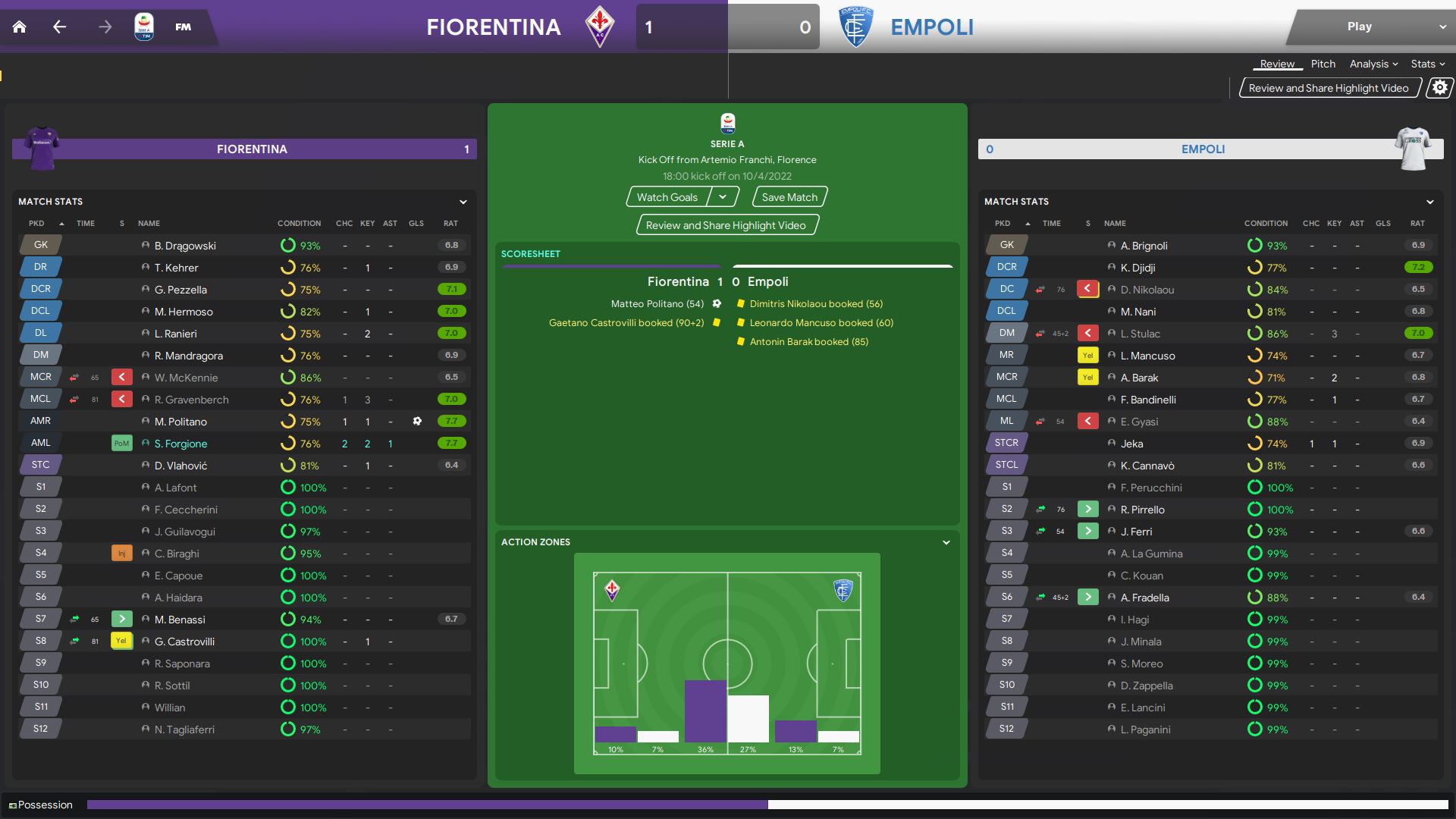 The fourth and final game was against Empoli. We won the game with only one goal. Matteo Politano scored a tap in goal at the 54th minute. In this match, I made the decision of playing another young prospect we had in our team – Stefano Forgione. He was exceptional in his debut. He created 2 chances, made 2 key passes and provided the winning goal’s assist. He was definitely enjoying himself out there and I hope he will continue deliver the same performance throughout the season.
